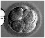Die befruchteten Eizellen wandern in den Gebärmutterhals. Die Zellteilung der Eizellen beginnt. Zweizell- Stadium, Vierzell-Stadium usw.= frühembryonale Teilungsstadien. Die ersten Teilungsstadien sind eine zehntel Millimeter groß. Diese Zellhaufen wandern in die Gebärmutter und nehmen Kontakt mit der Gebärmutterschleimhaut auf.